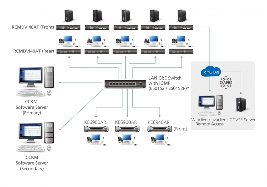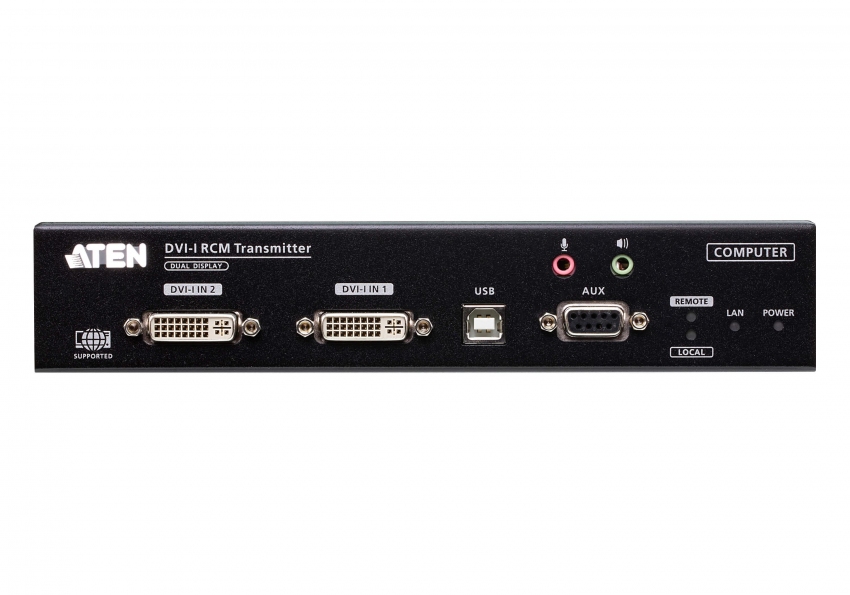 RCMDVI40AT — DVI-I KVM-удлинитель с доступом по IP с поддержкой двух дисплеев и специальными функциями удаленного управления (передатчик)