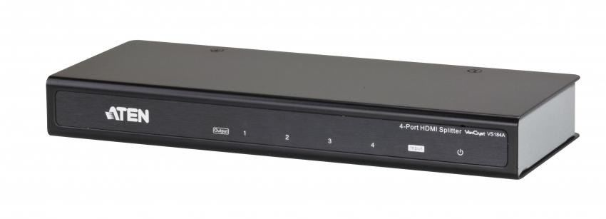 HDMI видеоразветвитель(video splitter) VS184A — это устройство для дублирования сигнала с одного HDMI источника на четыре HDMI устройств отображения. В качестве источников сигнала можно использовать различное оборудование, имеющее HDMI интерфейс, например, DVD-плееры, контент-плееры, спутниковые телевизионные приставки и т.д. В качестве устройств отображения, также возможно использование любых устройств с интерфейсом HDMI, таких как мониторы, проекторы, телевизоры и т.д..