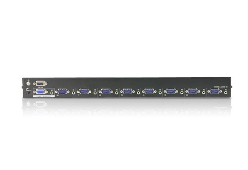 Видеопереключатель VS0801 используется для подключения восьми компьютеров - источников аудио/видео информации — к одному монитору или проектору. VS0801 обеспечивает возможность быстрого переключения между входными устройствами. Занимая 1U рабочего, VS0801 удобен для применения в серверных, когда требуется контроль приложений с высоким качеством видео и звука. Устройство имеет встроенный двунаправленный последовательный порт RS-232 для расширенного управления переключателем.
