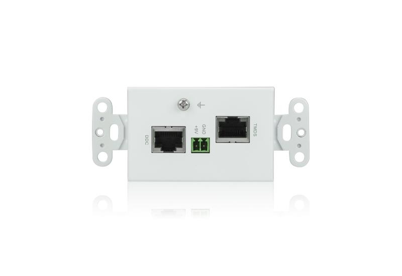 VE806T может получать питание от ресивера по второму кабелю Cat 5e для передачи сигнала мощности. Компактная настенная панель VE806 избавляет от громоздких проводов и обеспечивает аккуратность и удобство установки. Это решение идеально подходит для конференц-залов, музеев и любых помещений, в которых оборудование и провода должны быть скрыты от посторонних.