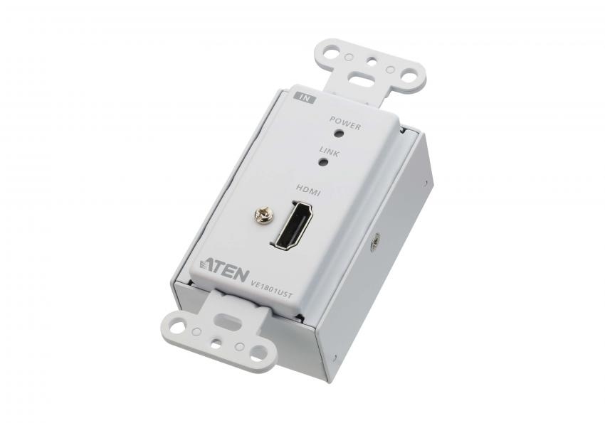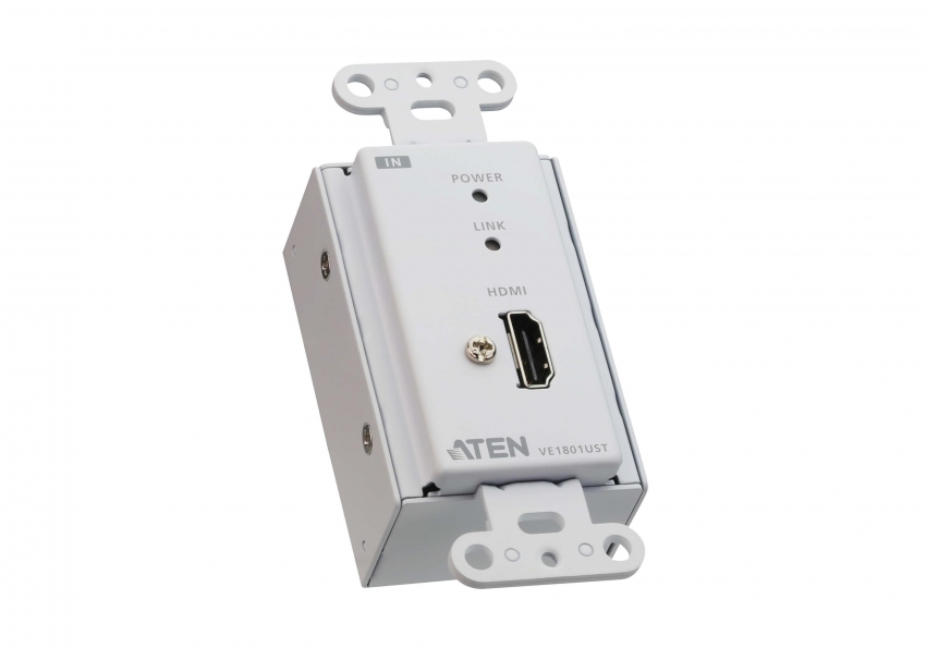 VE1801UST — передатчик HDMI видеосигналов разрешения 4K на расстояние до 40 метров по технологии HDBaseT-Lite, а также сигналов RS232. Передача сигналов осуществляется по одному кабелю Cat.5e/6/6a (или кабелю 2L-2910 Cat.6 компании ATEN) . VE1801UST поддерживает функции HDMI, такие как 3D, Deep Color и передачу HD-звука без потери качества.