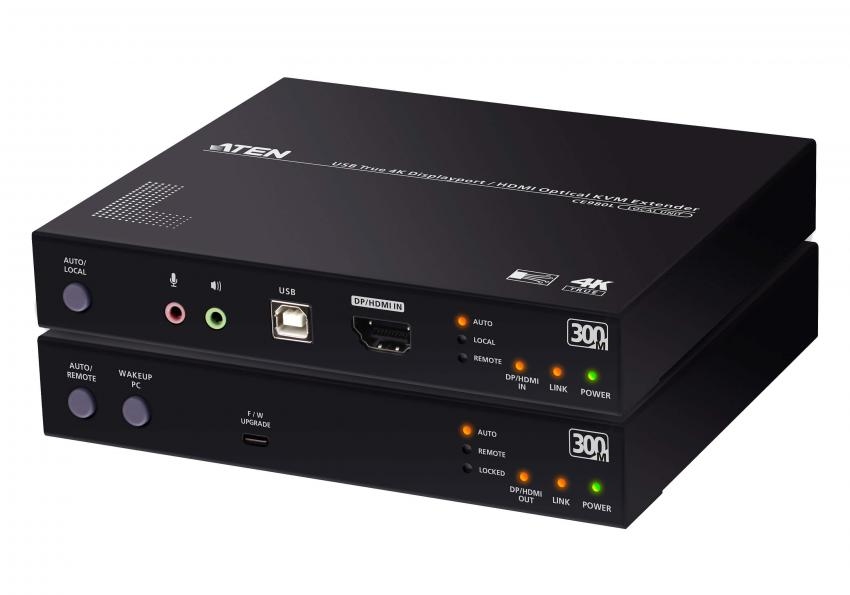 Благодаря встроенному комбинированному разъёму DisplayPort/HDMI, CE980 позволяет выполнять подключения по интерфейсу HDMI или DisplayPort, как на локальной, так и на удалённой консоли. При установке устройства предоставляется возможность выбора видеовхода и видеовхода, что позволяет создавать смешанные или одинаковые конфигурации дисплеев на обеих сторонах. CE980 позволят организовать удаленное управление клавиатурой и мышью, передачу данных по интерфейсам RS-232 и USB 2.0, отдельного стерео и встроенного в видеопоток звука, включая LPCM 7.1CH, Dolby TrueHD, Dolby Digital Plus и DTS-HD Master Audio. Функция привилегированного управления обеспечивает простое разделение доступа между локальной и удаленной консолями с помощью кнопок Auto/Local или Auto/Remote, предоставляя гибкость переключения управления в зависимости от эксплуатационных требований. <>p KVM-удлинитель идеально подходит для применений, требующих трансляции высококачественного видеосигнала и KVM-управления на больших расстояниях, например, в медицинских учреждениях, на постпродакшне, в производстве и т. д.