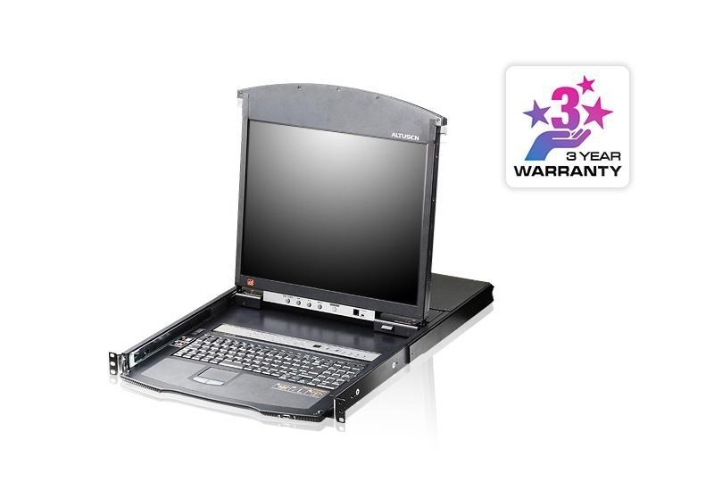 KVM-переключатель (KVM switch)Dual Rail с ЖК-дисплеем KL1516Ai – это устройство управления, обеспечивающее безопасный доступ к 16 компьютерам с одной консоли KVM (клавиатура, видео и мышь). Устройства состоят из KVM переключателя интегрированного с 17-ти дюймовым LCD монитором, клавиатурой и тачпадом.
