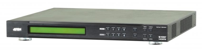 Mатричный HDMI коммутатор VM3404H предназначен для коммутации 4-х источников сигналов HDMI видео 4K/Full HD c 4-я соответствующими устройствами отображения в любой комбинации. Дополнительно устройство может коммутировать управляющие сигналы ИК и RS232. VM3404H имеет функционал формирования видеостены размером 2х2. Благодаря поддержки технологии HDBaseT-Lite устройство обеспечивает передачу сигналов к устройствам отображения на расстояние до 40/70 метров используя один кабель Cat 6a