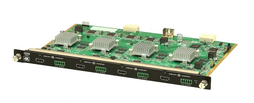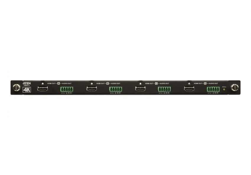 VM8814-AT является 4-портовой платой вывода a/v сигналов 4K с интерфейсом HDMI. Используется как плата вывода видеосигналов HDMI и предназначена для установки в шасси модульного матричного переключателя. Помимо интерфейса HDMI, передающего цифровые аудио/видео сигналы, плата вывода VM8814 обладает 4 стерео аудиовыходами, позволяющими извлекать стереозвук из HDMI-потока.