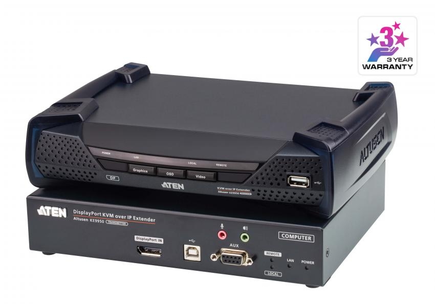 KE9950 — 4K KVM-удлинитель с доступом по IP и поддержкой одного DisplayPort-дисплея. KE9950 состоит из высокопроизводительного IP-передатчика (KE9950T), который подключается к компьютеру, и приемника (KE9950R), обеспечивающего консольный доступ c удаленного рабочего места.