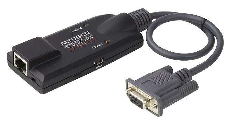 Через KA7140 можно подключится к консольному порту управляемого коммутатора, последовательному порту компьютера ил к любому устройству упраляемогу по последовательному интерфейсу. Адаптер имеет небольшие размеры и удобен в использования для серверов как стоечного, так и настольного исполнения. Работеет с KVM переключателями ATEN оборудованые разъемами подключения RJ45 серии KM, KN, KH.
