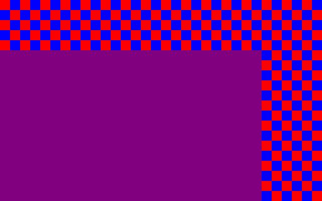 В надписи же 4:2:2 соседние по горизонтали пиксели одного тона – красные (255,0,0) в нечетных строках и синие (0,0,255) в четных, поэтому и "суммарный" пиксель 1x2 получается красным в четных строках и синим в нечетных. Ну, а потом это также "суммируется" глазом, который видит светлую надпись 4:2:2 на ровном несколько более темном фиолетовом фоне.